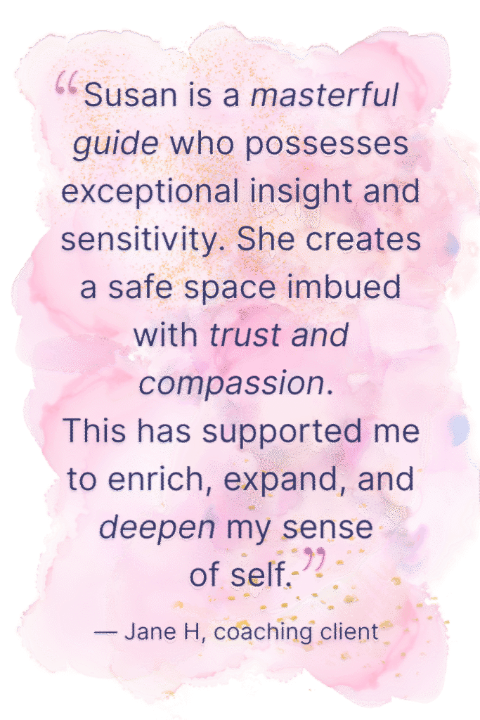 I’m Susan, an artist, facilitator and coach with decades of experience in transformational work and creative leadership.